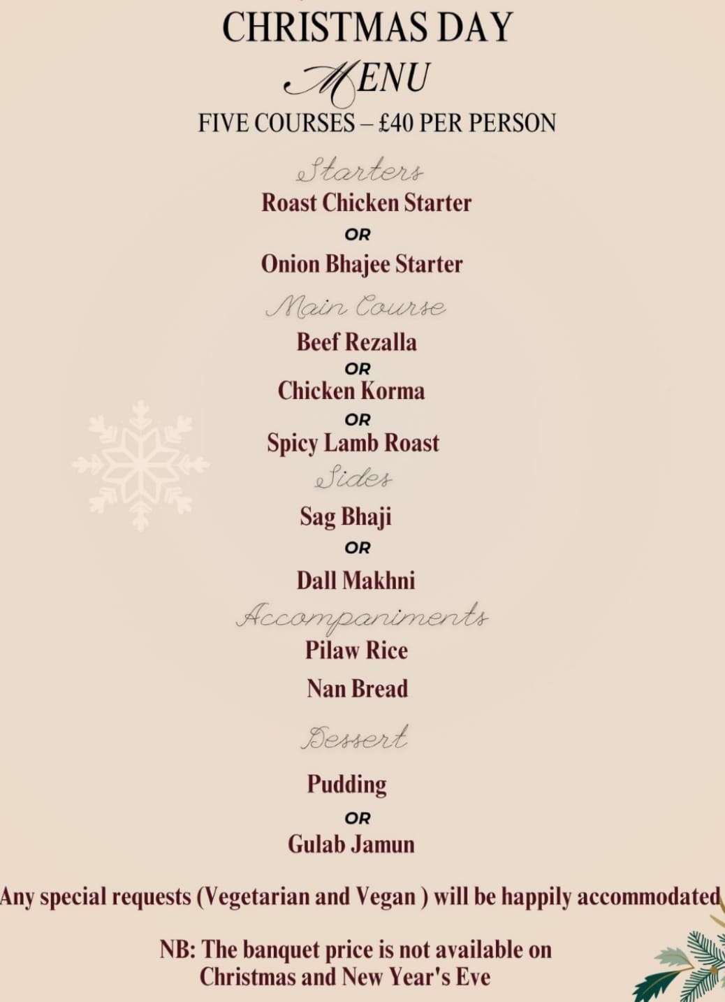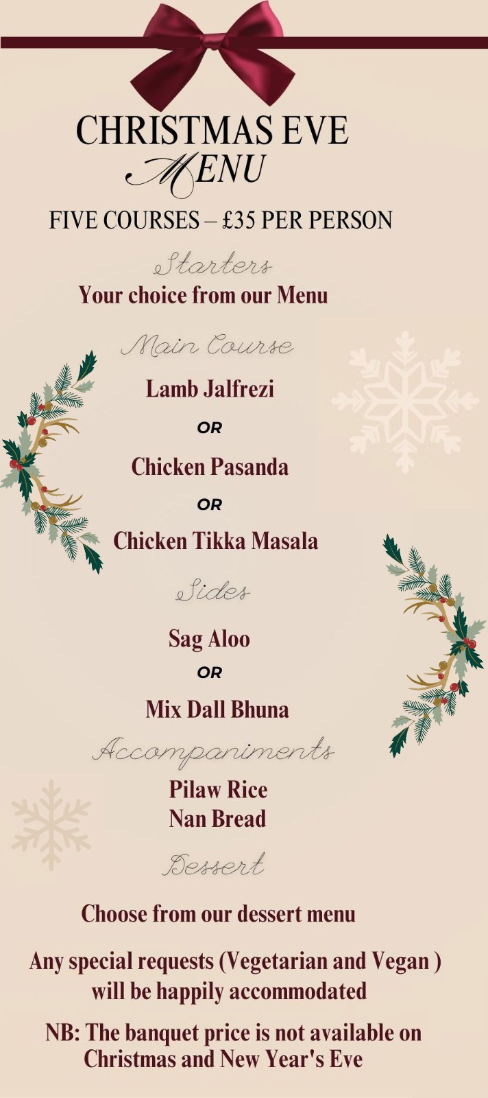Every Sunday And Wednesday 5 Course Meal Only £15.95 Per Person Dine In Only